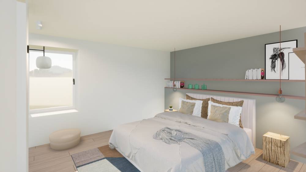 Les pièces de vie se situent à l'étage afin d'avoir un maximum de luminosité avec de belles hauteurs sous plafond. Les espaces de nuit (chambres et salle de bain) sont donc au Rez de Chaussée avec de beaux volumes et des espaces de circulation fonctionnels.